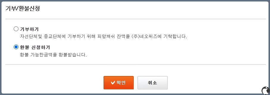 이 캐쉬를 환불하는 게 가능하고, 혹여나 원한다면 기부하는 것도 가능 합니다.