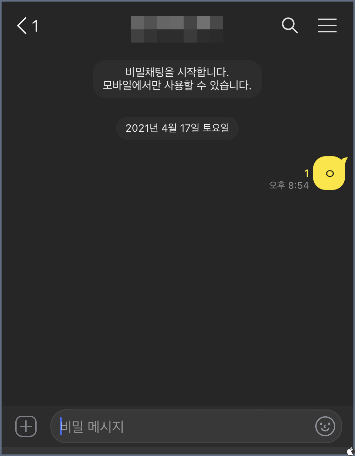비밀 채팅방 설정을 하면 대화방 이름 옆에 자물쇠 모양이 표시됩니다. 그리고 채팅창에는 비밀 메시지라고 표시 됩니다. 만약 나중에 다시 풀고 싶다면 같은 방법으로 공개 설정을 해주시면 됩니다.