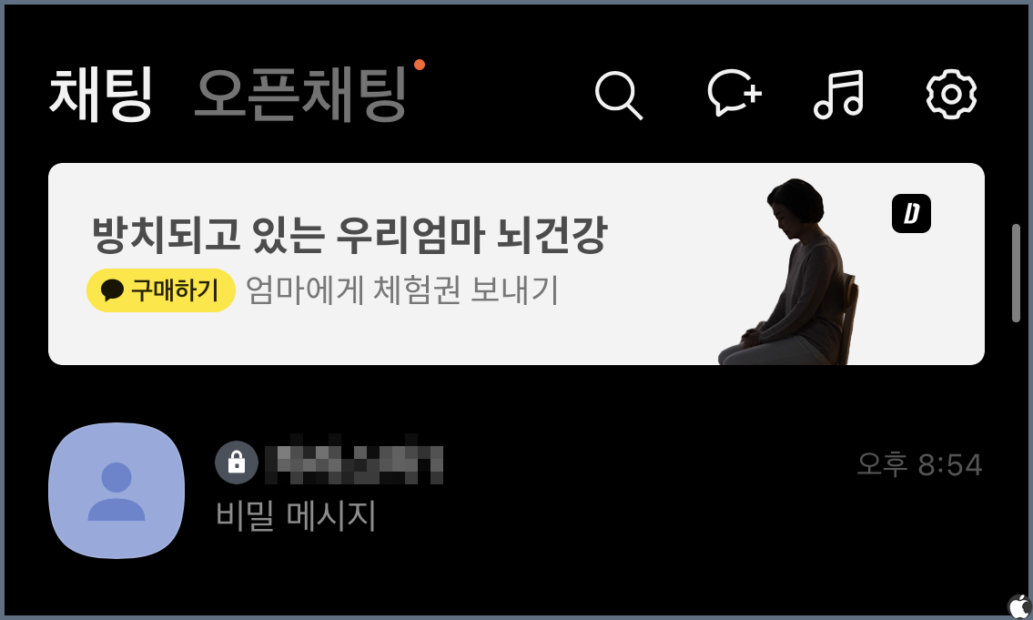 말씀드렸듯 모바일에서는 결국 해당 채팅방을 확인할 수 있지만 적어도 컴퓨터에서 카카오톡을 실행했다가 이 내용이 유출되는 일은 막을 수 있습니다. 그리고 비밀 메시지 이용 시에는 모바일이라 하더라도 목록에서는 내용이 보이지 않습니다.