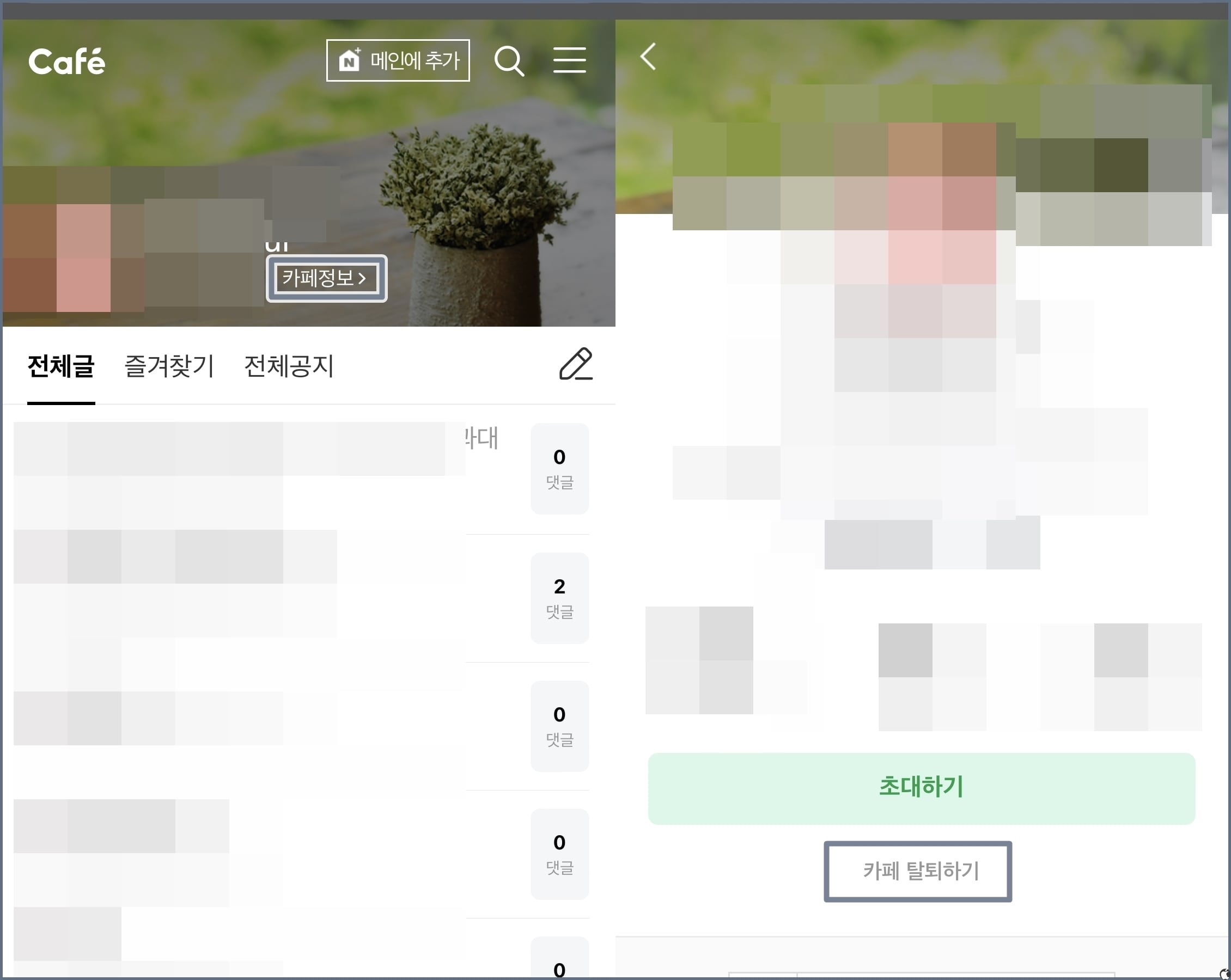 핸드폰으로 네이버 카페 탈퇴하는 법
